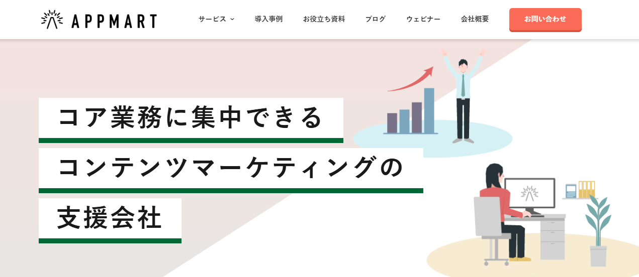 Appmart株式会社は、Webマーケティングやアプリ開発支援を行う中で培ったデザイン・構成力を活かし、訴求力の高い資料作成を提供します。特にマーケティング視点での情報整理や、ターゲットに合わせたストーリー設計が強みで、見やすさだけでなく成果につながる資料作りを重視しています。